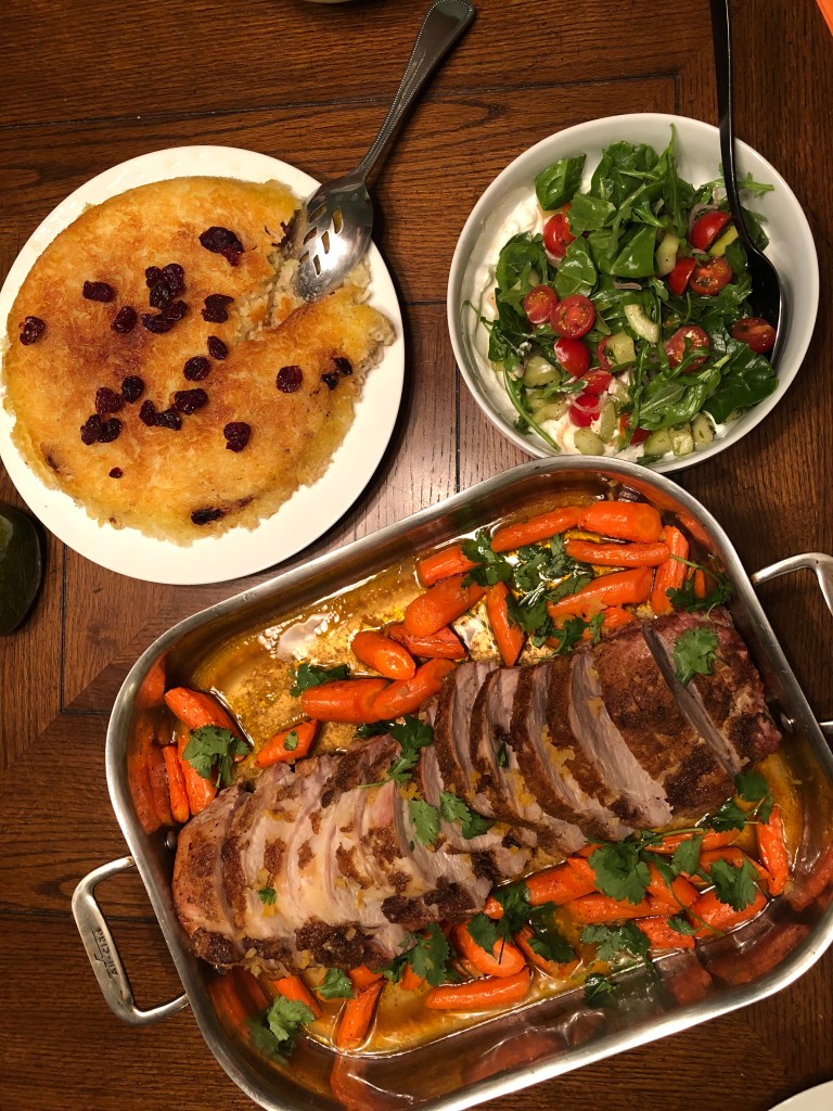 I definitely make typical kid-friendly food regularly, but often it’s a child-approved version of the meal I’m making for my husband and I. Like pasta with jarred marinara for the kids and spicy pasta alla vodka for us. Or spiced-rubbed pork roast for everyone, with a special sauce for the adults. With the exception of the tahini salad, I try to make everything safe for the kids to try in case they are feeling curious, and I put a bit of effort into the presentation to make our meals look inviting to skeptical kids. Honestly, the presentation is for me, too. I don’t want to eat a bowl of brown stew, I want some color!