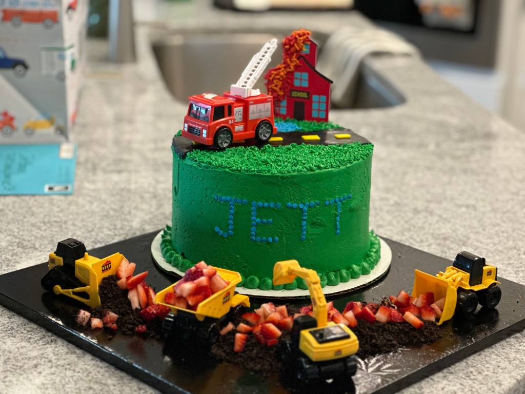 I get the impression that my friends and family are trying to help with the distraction process, since they sometimes give me projects of their own for me to work out in my free time. My nephew turned two last month and I was asked to make his cake, which seemed silly to me, because I’m not a baker, but it was something to work on and occupy my mind. My instructions were: no chocolate, he likes strawberries, and it must have vehicles. My kids helped plan the design and we couldn’t decide between a first responder theme or a construction theme, so we did both, because you’re only two once, right? I don’t even know if my nephew tasted the cake (buttermilk vanilla with strawberry lemon filling) but he reached right out and grabbed the construction equipment, loading and unloading the chopped strawberries until his hands were pink, so I declared it a success.